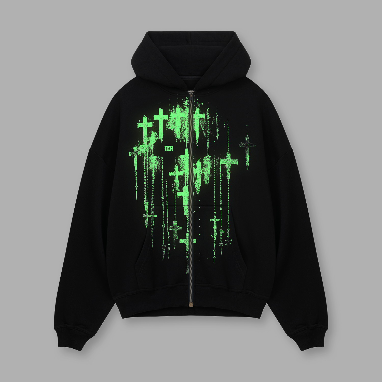 [IN STOCK] Black Crosses Glow Zip Hoodie
